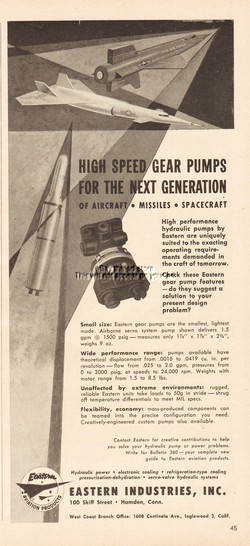 1959 Eastern Industries Hamden CT Aircraft Missile Spacecraft Gear Pumps Ad