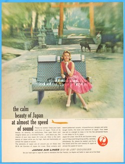 1960 Japan Airlines JAL 2nd Torii Kasuga Shrine Nara Pat Premo Dress DC-8 Ad