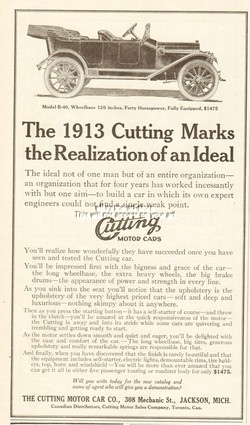 1913 Cutting Motor Car Co Jackson MI Model B-40 Antique Open Automobile 1912 Ad