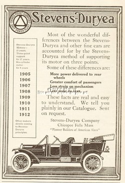 1912 Stevens Duryea Co Chicopee Falls MA Antique Open Motor Car Automobile Ad