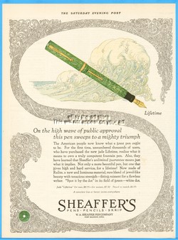1925 Sheaffer Green Lifetime Fountain Pen Fort Madison Iowa Vintage Magazine Ad