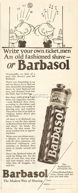 1925 Barbasol Shaving Cream Indianapolis Indiana Write Your Own Ticket Men Ad