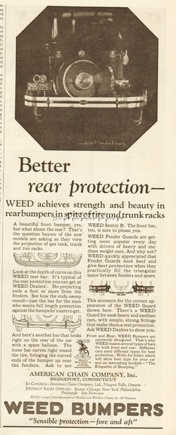 1925 American Chain Co Bridgeport CT Weed Automobile Car Bumper JW Pondelicek Ad