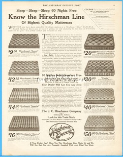 1908 J C Hirschman Company Indianapolis Indiana Spring Mattress Bedroom Decor Ad