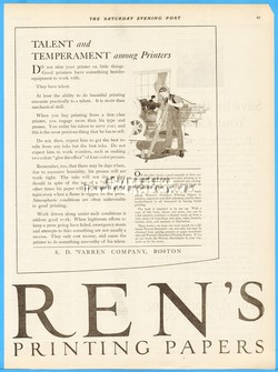 1921 S D Warren Co Boston MA Paper Talent Temperament Among Printers Print Ad