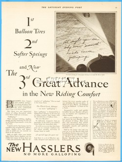 1927 Hassler Indianapolis IN Vintage 1920s Automobile Car Shock Absorbers Ad