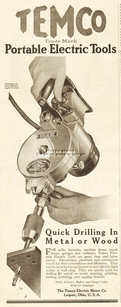 1919 Temco Electric Motor Co Print Ad: Portable Drill Leipsic Ohio Vintage Tool