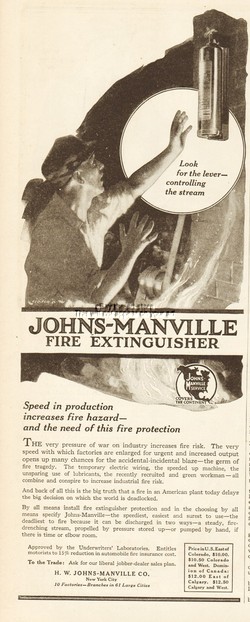 1918 Johns Manville Fire Extinguisher Ad Production Speed Increases Fire Hazard