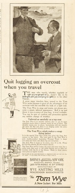 1918 Tom Wye Knitting Mills Ad Winchendon MA Men's Overcoat Style Fashion