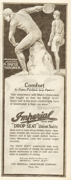 1918 Discus Thrower Union Suit Imperial Underwear Ad Piqua OH Men's Underwear