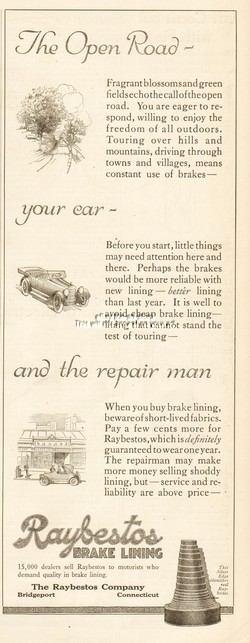 1918 Raybestos Co Bridgeport CT Antique Automobile Car Asbestos Brake Lining Ad