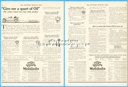 1918 Vacuum Oil Company Gargoyle Mobiloil Ad Automobile Car Lubrication Chart