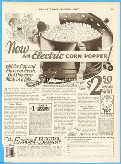 1927 Excel Electric Popcorn Popper Vintage Print Ad Muncie IN 4 Tasty Recipe