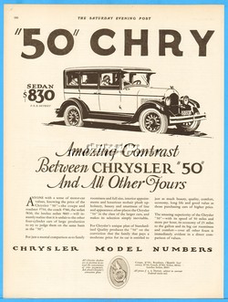 1927 CHRYSLER Sedan 50 and 60 Vintage 1920's Motor Car Art Ad
