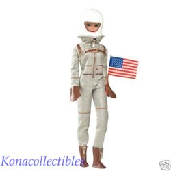 Celebrate classic Barbie� careers through the decades! 1965�s Miss Astronaut fashion from the 1600 series catapulted Barbie� into a whole new style universe! Dressed for the final fashion frontier with a silvery metallic spacesuit, white helmet, mittens, and zip boots, Barbie� doll �sashays� her way into space. Vintage Reproduction by Bill Greening.