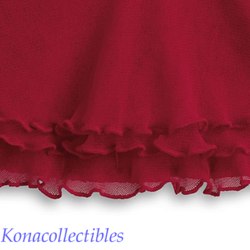 - A bright-red dress with silver embroidery at the neckline, a velour bodice with flutter sleeves, and a three-tiered mesh skirt accented with a sparkly snowflake