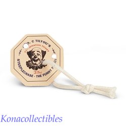 A reproduction ride ticket that hangs on a string