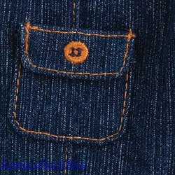 - Dark denim jeans with front patch pockets