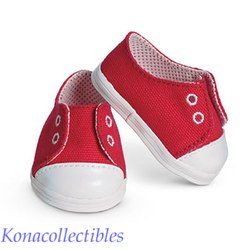 - Red canvas sneakers that slip on for playtime