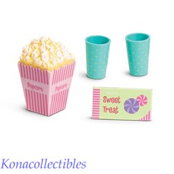 - A snack counter and pretend goodies for theatergoers: popcorn, sweet treats, and two drink cups