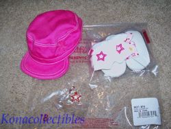 Here is the Exclusive Fashion Doll Accessory Set from American Girl Place. Fashion Accessories for DollsIncludes a doll-sized cadet cap, a starry scarf, fingerless gloves, a pair of shoes, and a charm (not shown) to give her outfits some extra flair. It is a darling set of pink hat, scarf and gloves shoes and even a charm. This set is NEW and comes in original American Girl display bag so it's ready to be the perfect gift. Keep your American Girl doll stylish with this adorable set.