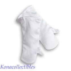 - Elegant white gloves and embroidered shoes to complete her festive look