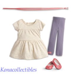 IIncludes a tunic, purple leggings, a faux-leather belt, and ballet flat shoes. Fits 18" American Girl dolls. This is just like Isabelle's Metallic Dress except it doesn't have the mesh overlay with metallic embellishments on the hemline.