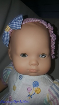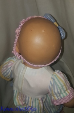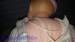This Bitty Baby� can be loved and nurtured like a real baby! She�s 15 inches long, with light skin, blonde hair, and blue eyes that open and close. She has a cuddly cloth body, and her head and limbs are made of smooth vinyl. She is a very old Bitty Baby doll from when American Girl first produced Bitty Baby. You can tell this because of the large, capital lettering on the backstamp and those super white, blonde eyelashes!