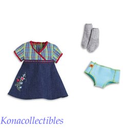 American Girl Bitty Twins Meet Outfit Dress Denim Plaid New!