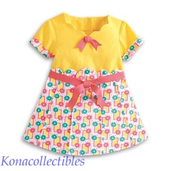 Kit will be pretty as a picture when she snaps that perfect shot! This outfit includes: - A dress with a lemon-yellow bodice, a pair of grosgrain bows on the
