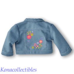 Berry Fresh Collection- Style In Bloom Jean Jacket for 18-inch Dolls: A faded denim jacket with working buttons and floral artwork on the back.