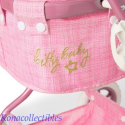 It�s time to take Bitty Baby on a walk in this stroller that�s big enough for two�perfect for one Baby or two! It has a pink metallic frame that holds a pink printed bassinet lined with plush fabric for a soft and sweet landing place. Open and close the canopy for a bit of sun or shade, and store all of Baby�s necessities in the caddy underneath. The stroller folds flat for storage.