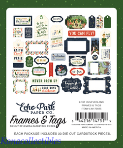 Echo Park Lost In Neverland Frames & Tags Ephemera New! Peter Pan