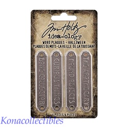 If you love adding word plaques to your Halloween projects, this set of 4 is going to delight you. This set of 4-word plaques is designed by Tim Holtz for the Idea-ology Halloween Collection. These plaques include the phrases The Apothecary, Found Objects, Curious Things, and Bone Collector. These plaques can be used with fasteners to adhere the plaque to your project. These plaques measure 2 3/8" x 7/8". These plaques are constructed of metal with an antique nickel finish. Plaques look amazing when added to cards, invitations, Halloween paper crafts, Halloween home decor, vignette boxes, curios, and many other Halloween products.