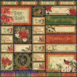 Graphic 45 Warm Wishes So Very Merry Sheet 1-12X12 New! Tags!