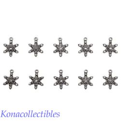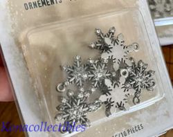 Whether you're creating for your holiday party or jewelry piece, the intricate detailing of Tim Holtz Adornments will take your make from drab to fab. Crafty little metal charms that are longing to dangle from a journal, added to a jewelry piece or adorn a card, or invitation with a simple brad. All snowflakes are adorned with diamond-like charms. Pack contains 10 unique snowflake charms.