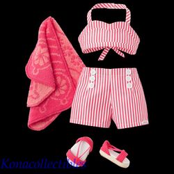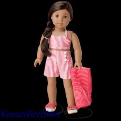 Details Nanea and her friends like to splash in the waves and treat themselves to shave ice at the beach. She�ll have a fun day in the sun in this outfit that includes: - A 1940s halter style pink-and-white-striped swim top with a sweetheart neckline and straps that tie into a bow at mid-back