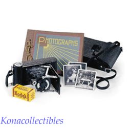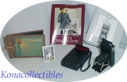 Check out this VINTAGE Camera by Pleasant Company for the American Girl doll, Kit. This set is just super! The camera is so well done, I think it might actually be able to take pictures. You also get her Photography scrapbook, a case with strap to keep the camera protected, a roll of Kodak film (too cute!), doll-sized photographs that Kit took to put in the album, instuctions for the camera and a pamphlet telling Kit's story about her love for photography.