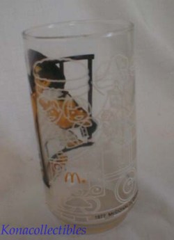 glasses that were a McDonald’s promotion dated 1977 from the McDonaldland Action Series. This glass has a color graphic