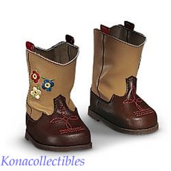 This is just the cutest outfit. Molly looks great in a cowboy hat! You will also receive those adorable Embroidered Boots but i just found out they have been damaged and are cracking so basically worthless and unusable. Both sets are NEW, never been played with and come in original American Girl boxes. You won't be disappointed with this wonderful Limited Edition outfit for Molly!