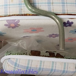 This set is new in original American Girl Today box for easy gift giving. Unfortunately, this is old and the metal trim is corroded so it no longer looks new. The glue used to adhere the padded arm rests has discolored to an orange and can be seen. Please review pictures carefully and bid accordingly.