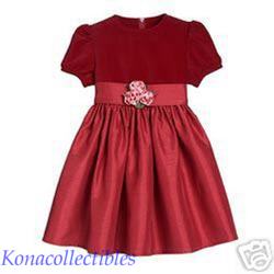 This dress is absolutely fantastic! Intricate fabric rosettes, along with a bow in the back, add an elegant and festive to this below-knee-length dress. It has a cotton velveteen bodice with polyester/nylon shantung skirt. It really is elegant. What a perfect dress to wear for Christmas dinner! And to keep your little warm one, add this adorable reversible cape which is a must have to go with this dress.