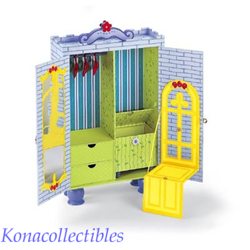 Open the doors to this doll case and it becomes a place for pretend! There�s a doll-sized throne, three hangers, drawers for all the little stuff, and a handle on top. W: 13", H: 21", D: 5 1/4". 4 3/4 lbs.