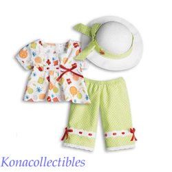 This very adorable outfit will come to you NEW, never been played with and in original American Girl box for easy gift giving. Unfortunately, the shoes are damaged from age and are cracking. Please consider them not included with this set. I'll send them if you want they are pretty worthless.