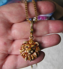 Lisner Amethyst Rhinestone & Golden Leaf Necklace Vintage