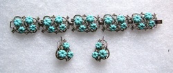 Trifari Blue Rosette & Rhinestone Bracelet Earrings Set