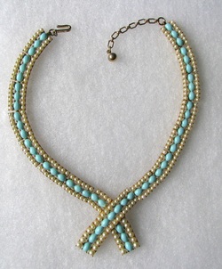 Trifari Turquoise & Pearl Crossover Necklace Vintage