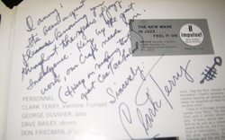Clark Terry It's What's Happenin' The Varitone Sound of Clark Terry Signed and inscribed 'Danny It's been a great pleasure knowing you throughout the years of Jazz Indulgence, keep up the good work, our craft needs you. (& keep on making that great Cee Teae Salad) Clark Terry' on the impulse! records label Stereo A-9157 Diagonal snip at upper left corner, otherwise excellent condition NM vinyl A great find! See my other store listings for more great vintage vinyl! JB66