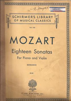 Mozart Eighteen Sonatas for Piano & Violin Schirmer Vol. 836 Schradieck Score (329 pages) and Part(96 pages) Very Good Pre-Owned Condition Minor notations on the score (few pages) Nat4