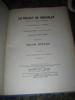 Oscar Straus Le Soldat du Chocolat The Chocolate Soldier FIRST EDITION Paris Max Eschig 1945 SIGNED and INSCRIBED BY Oscar Straus Paris 1948 Excellent beautiful lovely condition (is that superfluous enough for you!?)